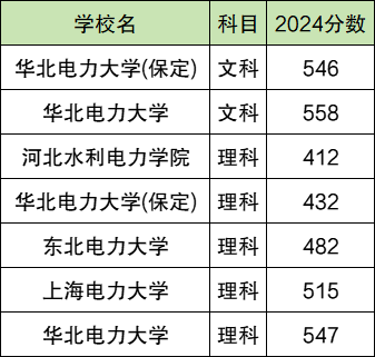 2024全国电力大学在理科录取分数线480分-617分。最高录取分数线对应院校:华北电力大学;最低录取分数线对应院校:河北水利电力学院。