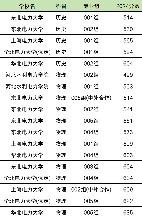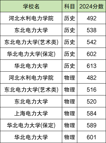 2024全国电力大学在历史类录取分数线492分-613分。最高录取分数线对应院校:华北电力大学;最低录取分数线对应院校:河北水利电力学院。