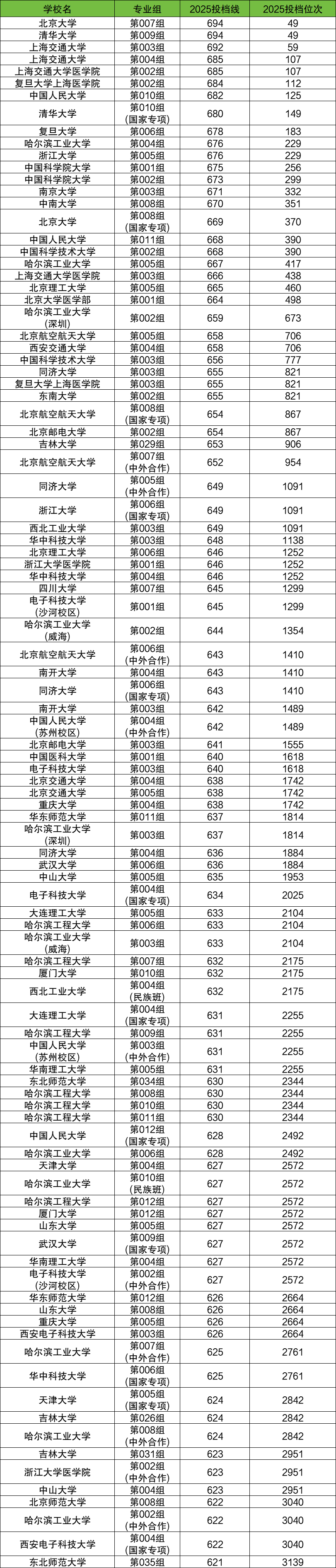 下面是2025年各大学在吉林物理类录取分数线排名前100强名单: