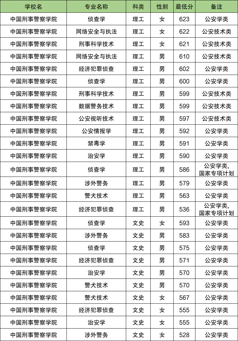 中国刑事警察学院:在河南省文科最低528分,理科最低536分。