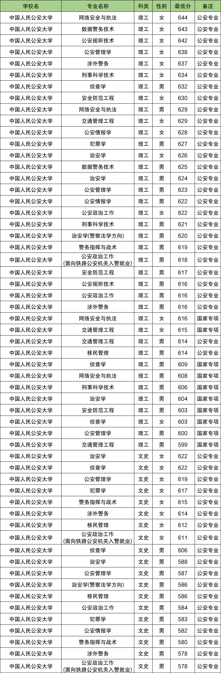 | 中央司法警官学院 | 文史 | 男 | 525 |