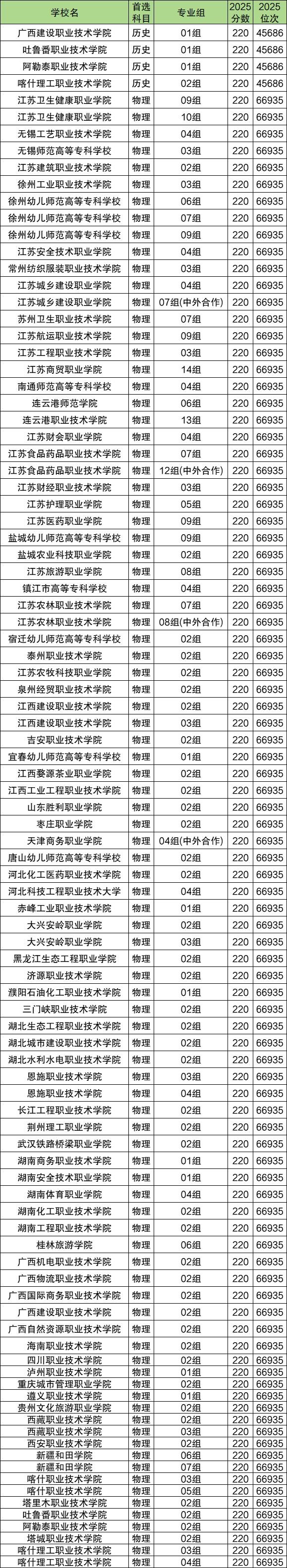 2025年江苏公办大专最低分数线:历史类220分、物理类220分。