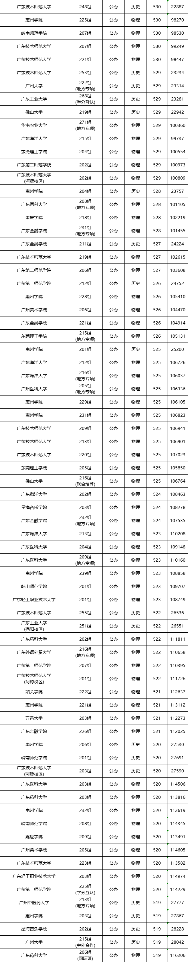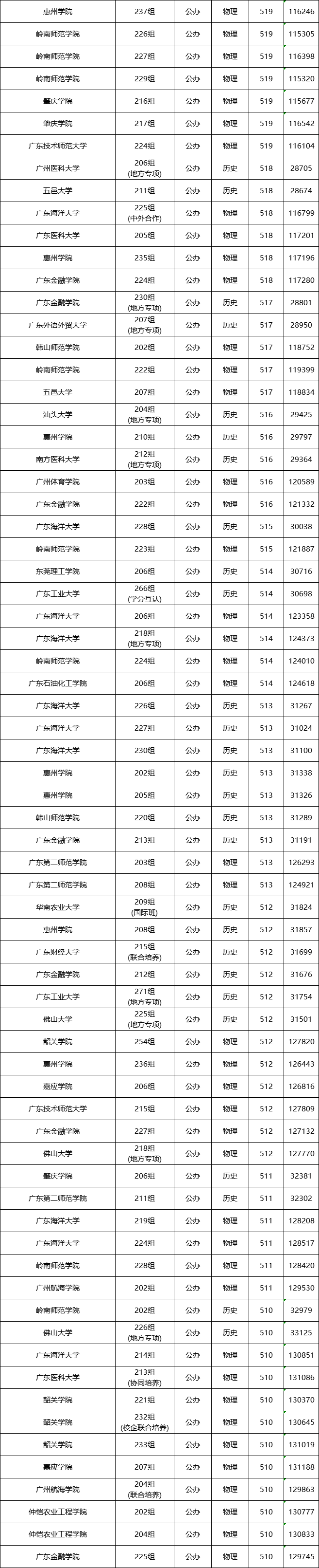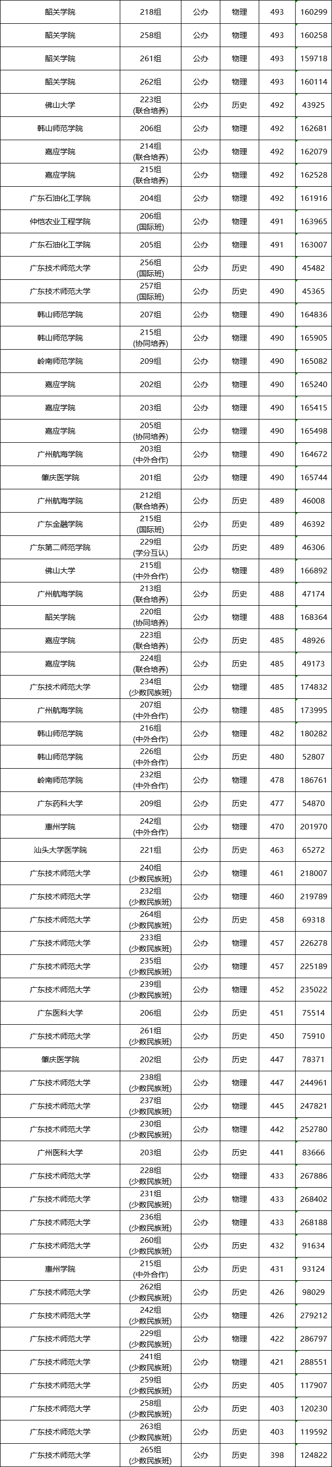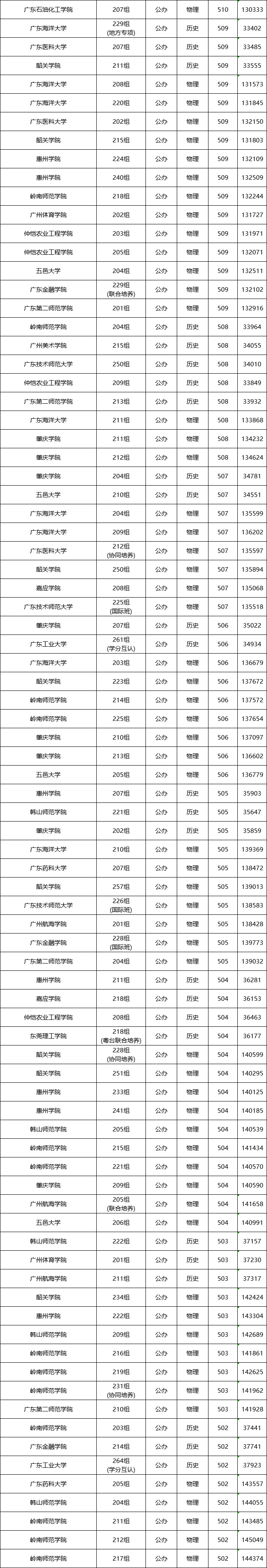 我们以广东公办院校在广东本省2024年招生的分数线为例,我们可以通过数据看看分数高、分数低的都有哪些。