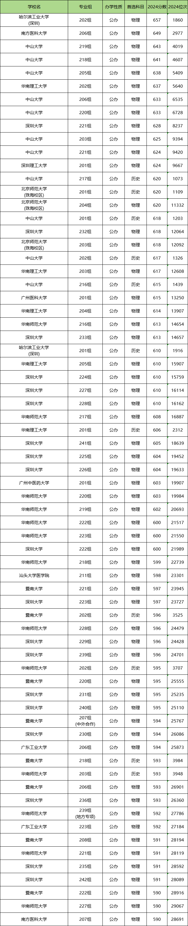 二、2024广东公办本科院校分数线