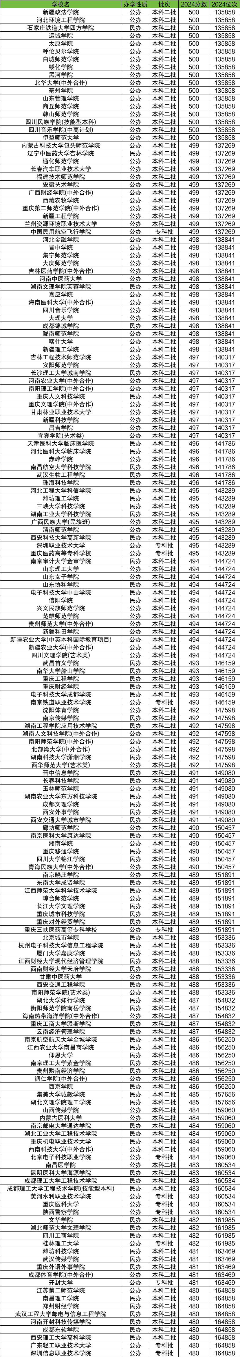 当然这只是老师参考四川省2024年高考录取数据整理的,每个地区480到500分能上的大学并不相同,还需要具体分析。