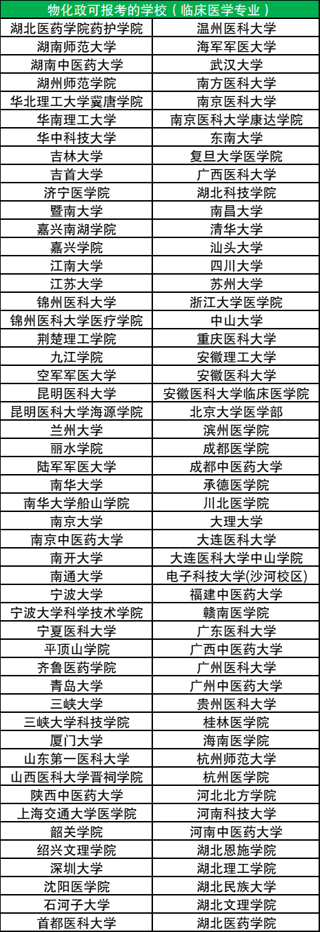 可报考的院校包含:清华大学、首都医科大学、北京大学医学部、南开大学、天津中医药大学、中国医科大学、同济大学、复旦大学医学院、上海交通大学医学院、中山大学、暨南大学等。