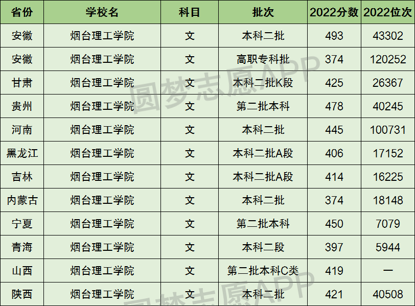 1、烟台理工学院在全国普通高考省份的【文科】招录数据,包含招生批次等信息: