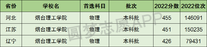 2、烟台理工学院在全国普通高考省份的【理科】招录数据,包含招生批次等信息: