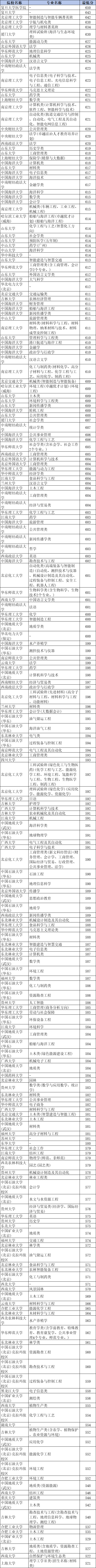高校专项计划各个大学录取分数线: