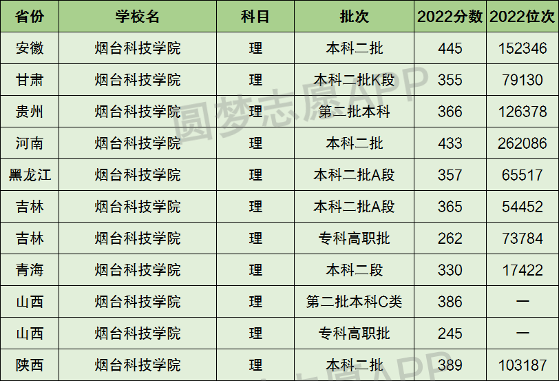 2、烟台科技学院在全国普通高考省份的【理科】招录数据,包含招生批次等信息: