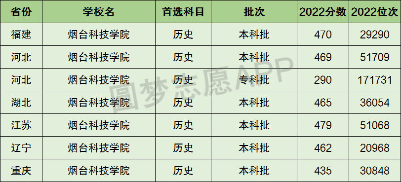 4、烟台科技学院在3+1+2新高考省份【首选历史】的招录数据,招生批次为本科批,其中有的省份还在专科批中招生: