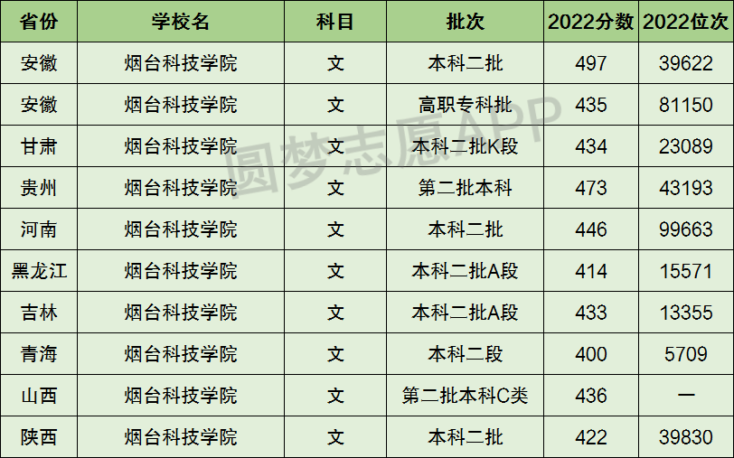 1、烟台科技学院在全国普通高考省份的【文科】招录数据,包含招生批次等信息: