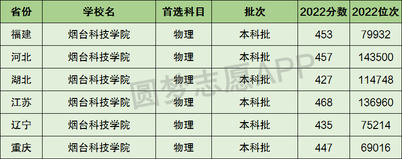 5、烟台科技学院在3+1+2新高考省份【首选物理】的招录数据,招生批次为本科批,其中有的省份还在专科批中招生: