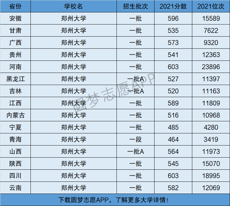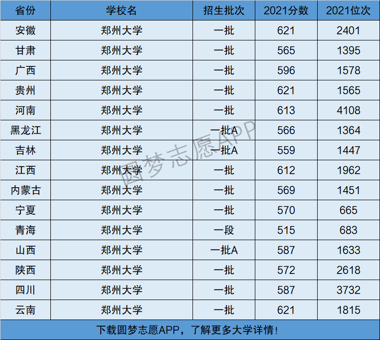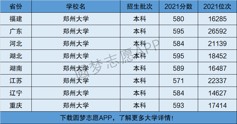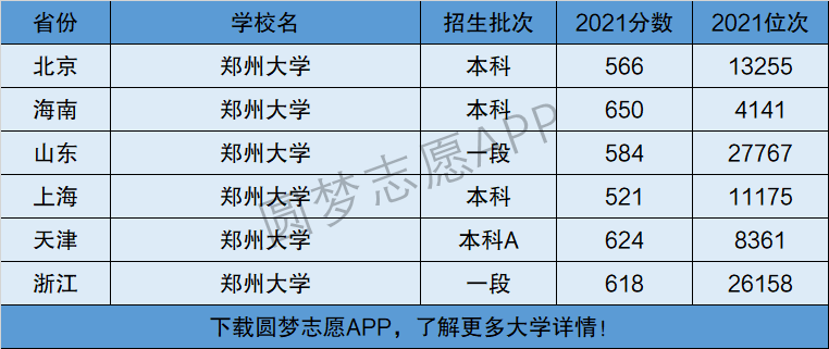下面圆梦志愿将为大家展示郑州大学2021年在全国各省市的最低分数线和位次,大家可以在了解郑州大学在全国各省详细招生批次的同时,也顺便看看郑州大学的招生录取分数线是多少!
