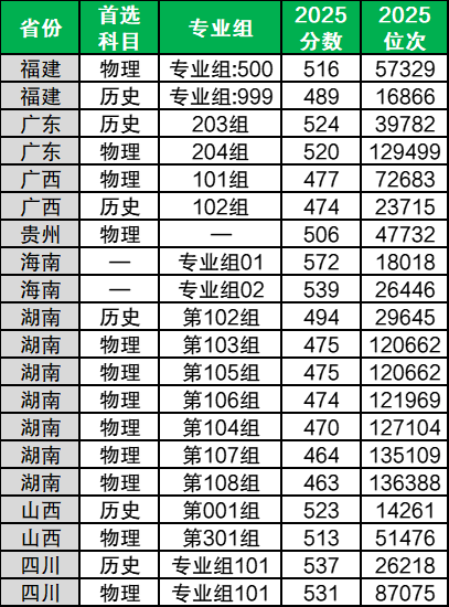 物理类:最低分为520分,对应最低分专业组为204组,录取位次129499名;