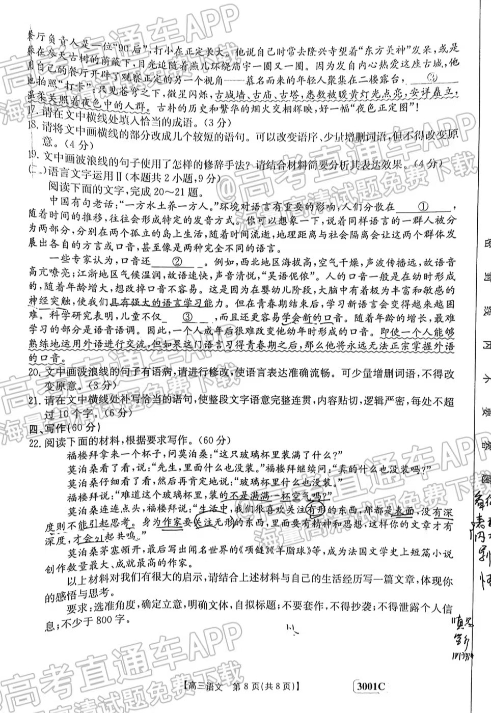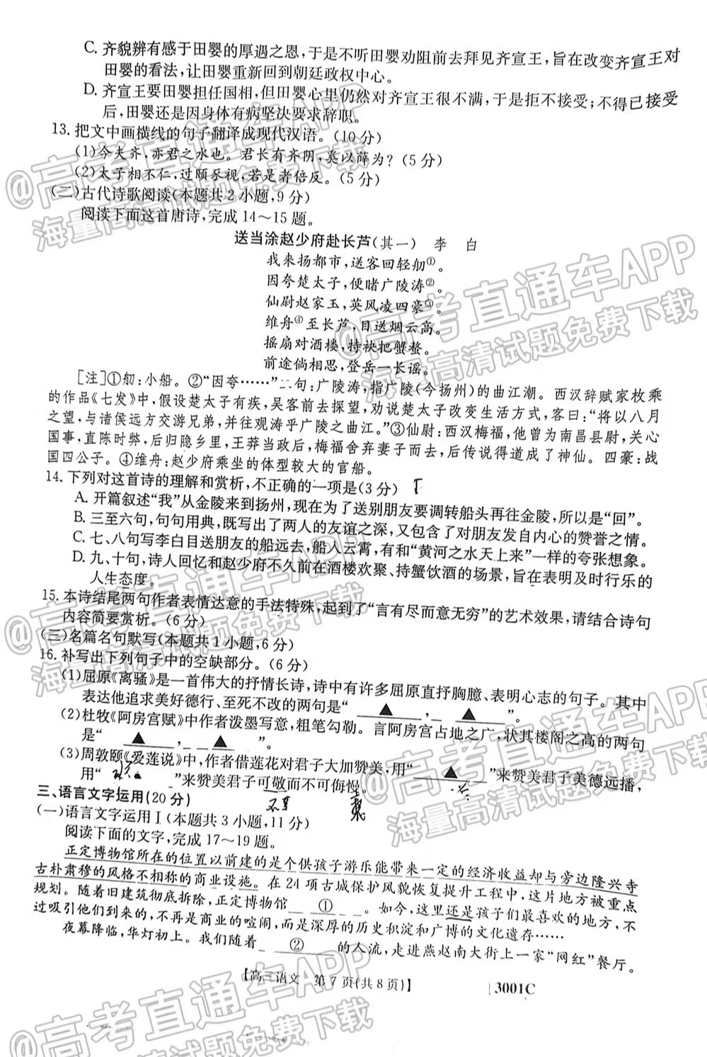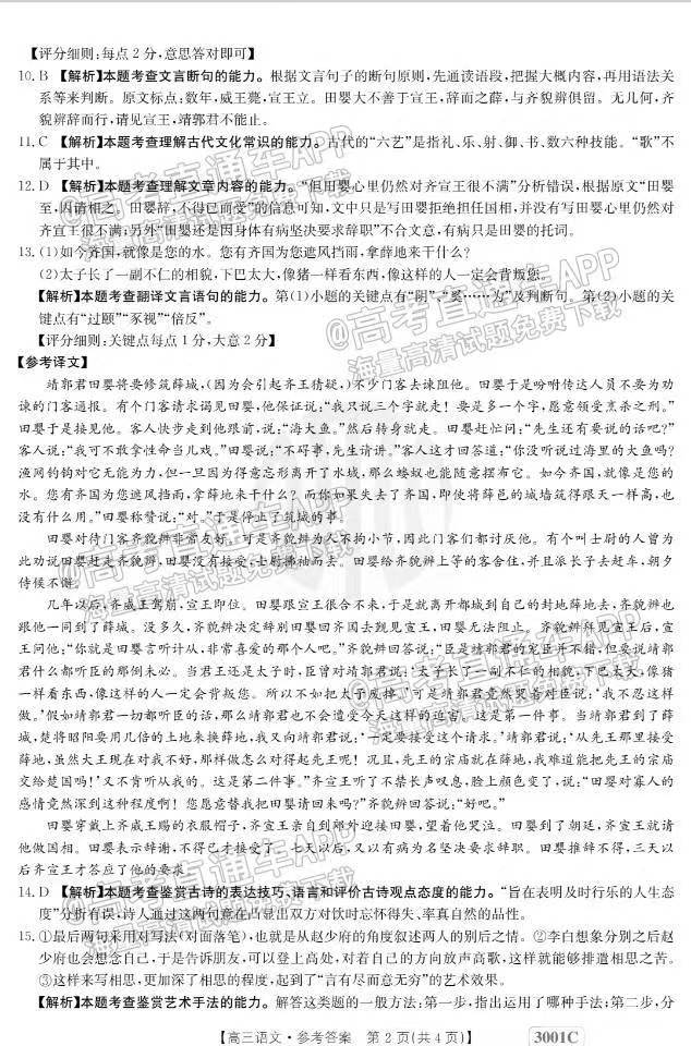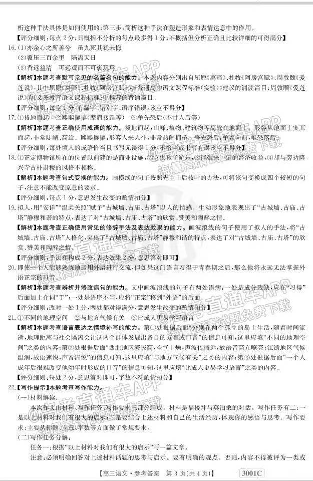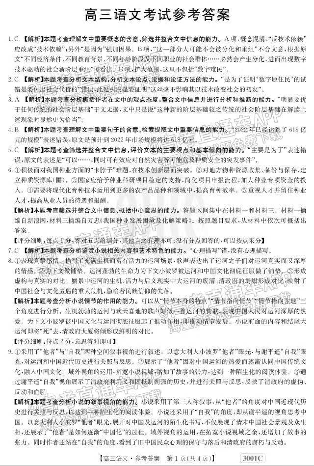 1.2023江西金太阳高三1月联考语文答案解析及试题解析汇总
