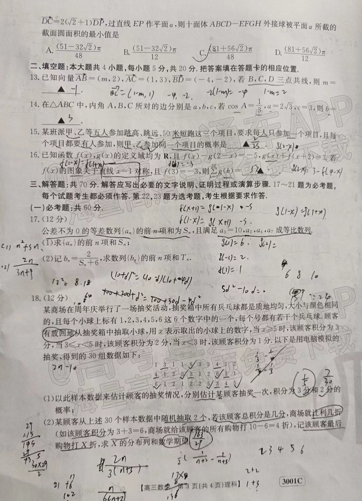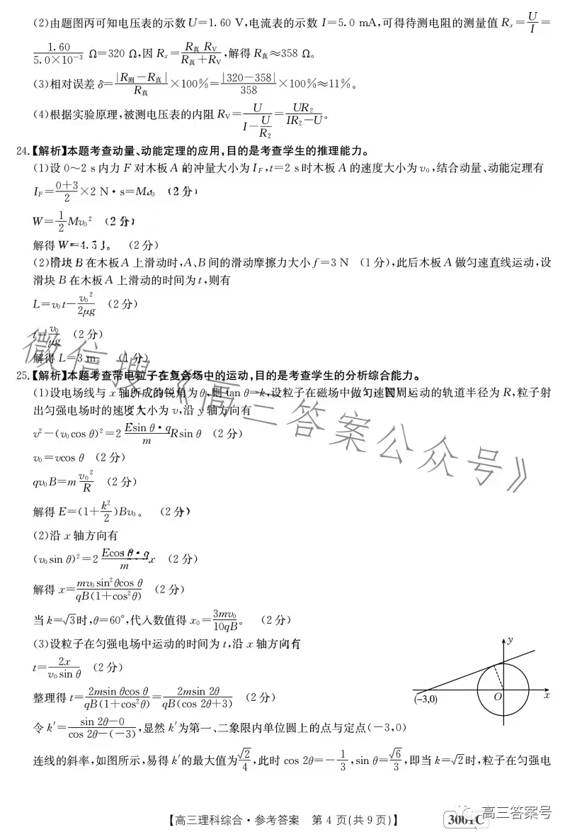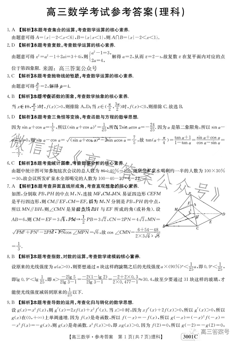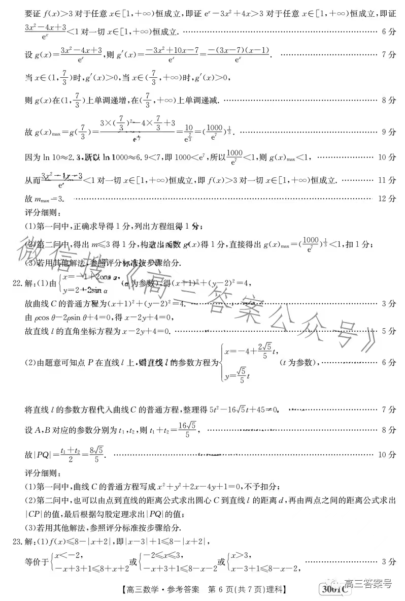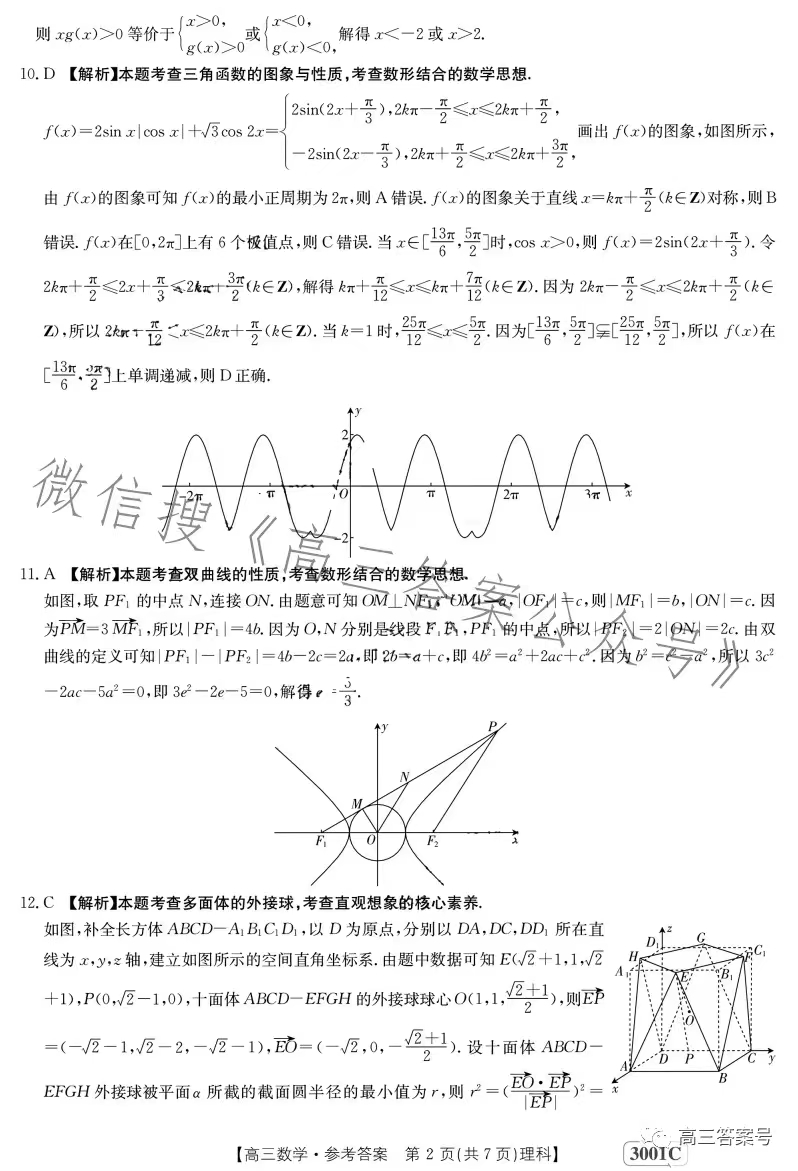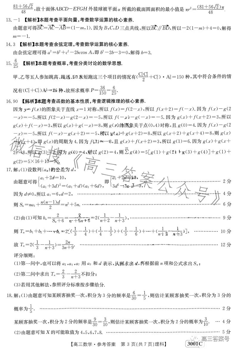 3.2023江西金太阳高三1月联考理数答案解析及试题解析汇总