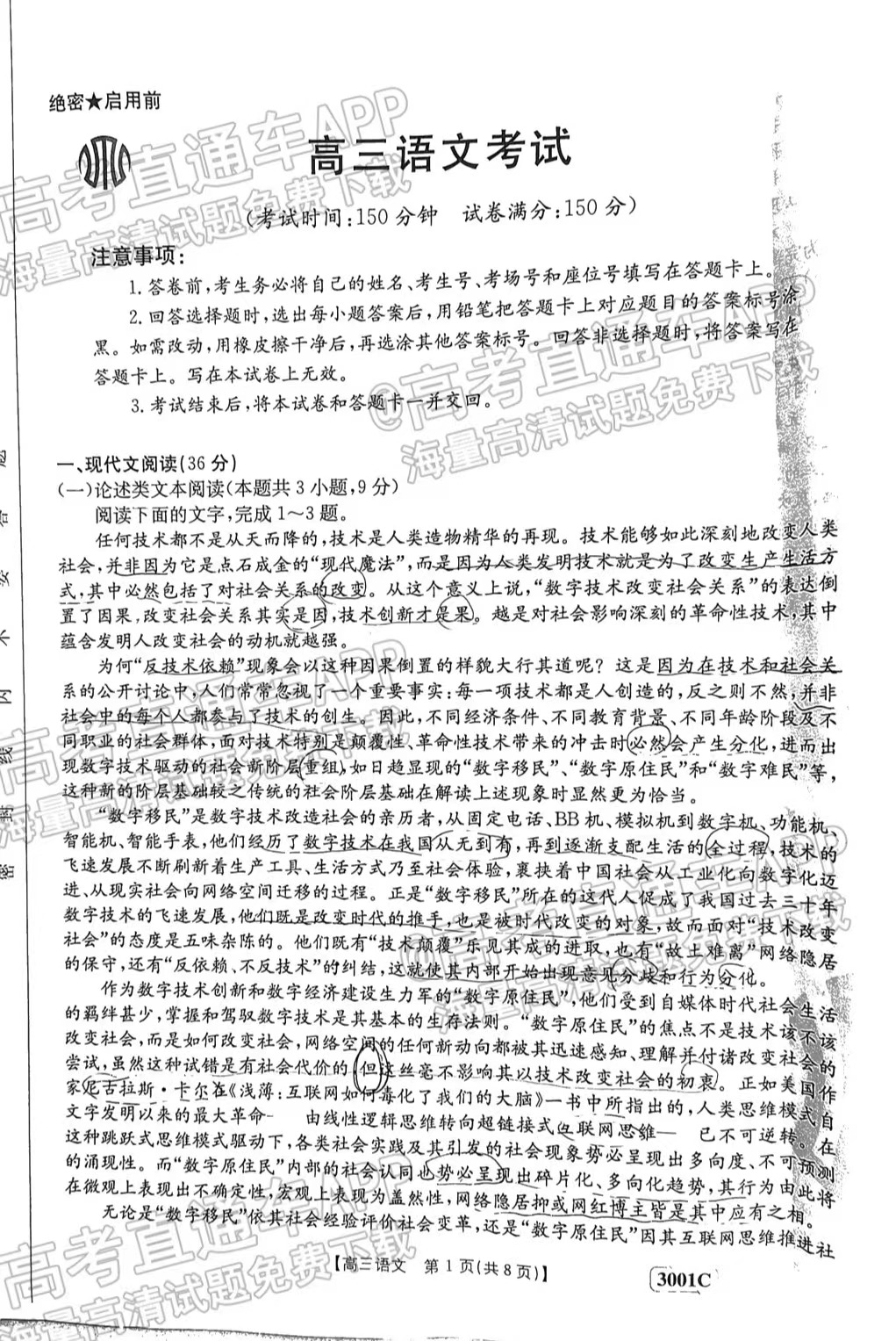 1)试卷