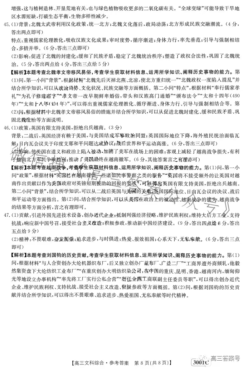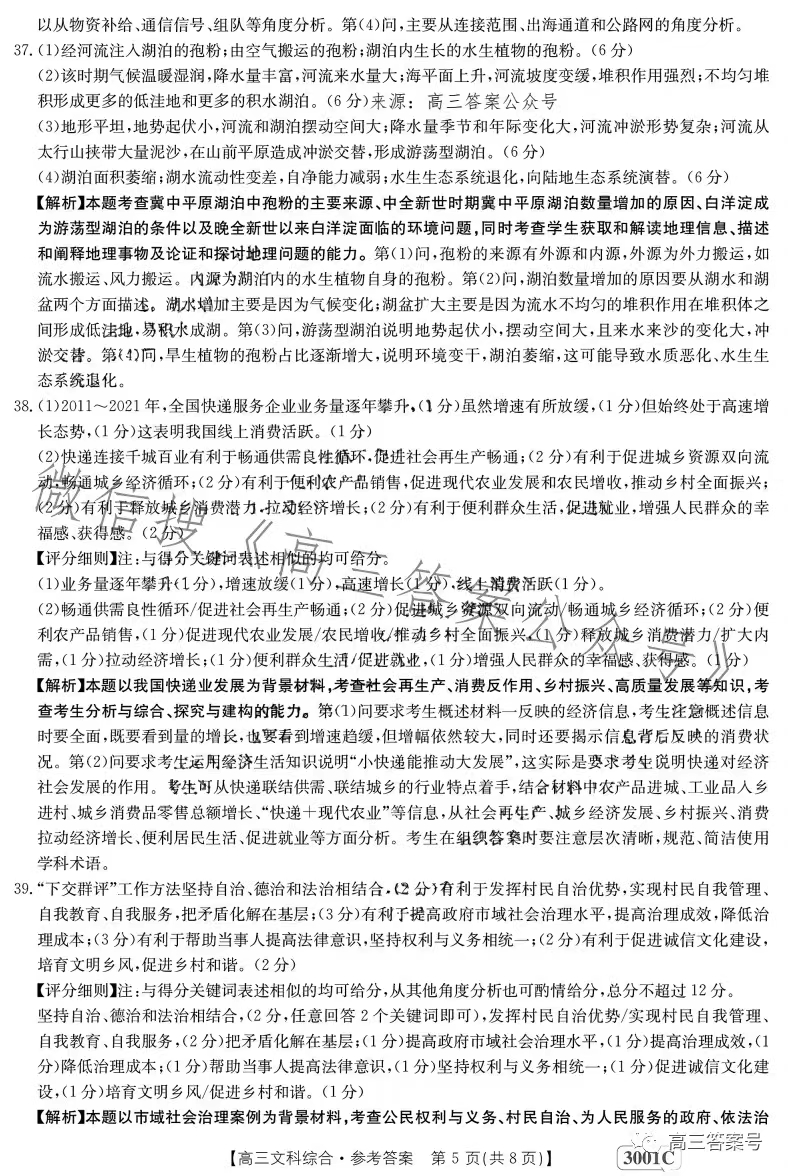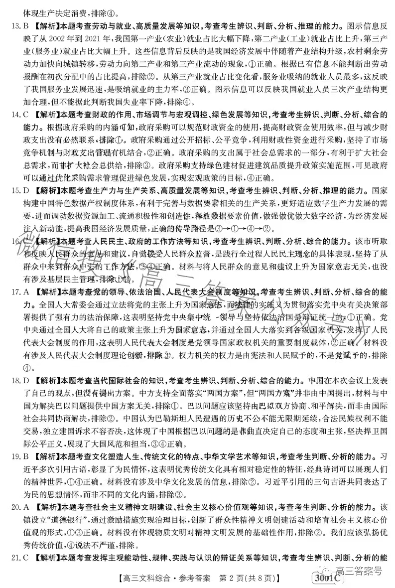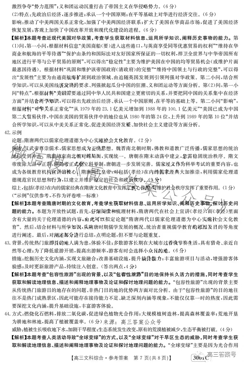 4.2023江西金太阳高三1月联考文综答案解析及试题解析汇总