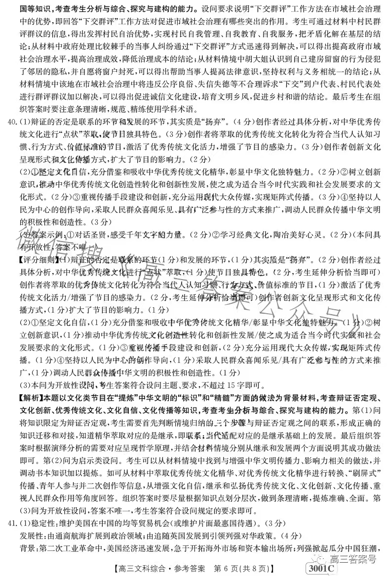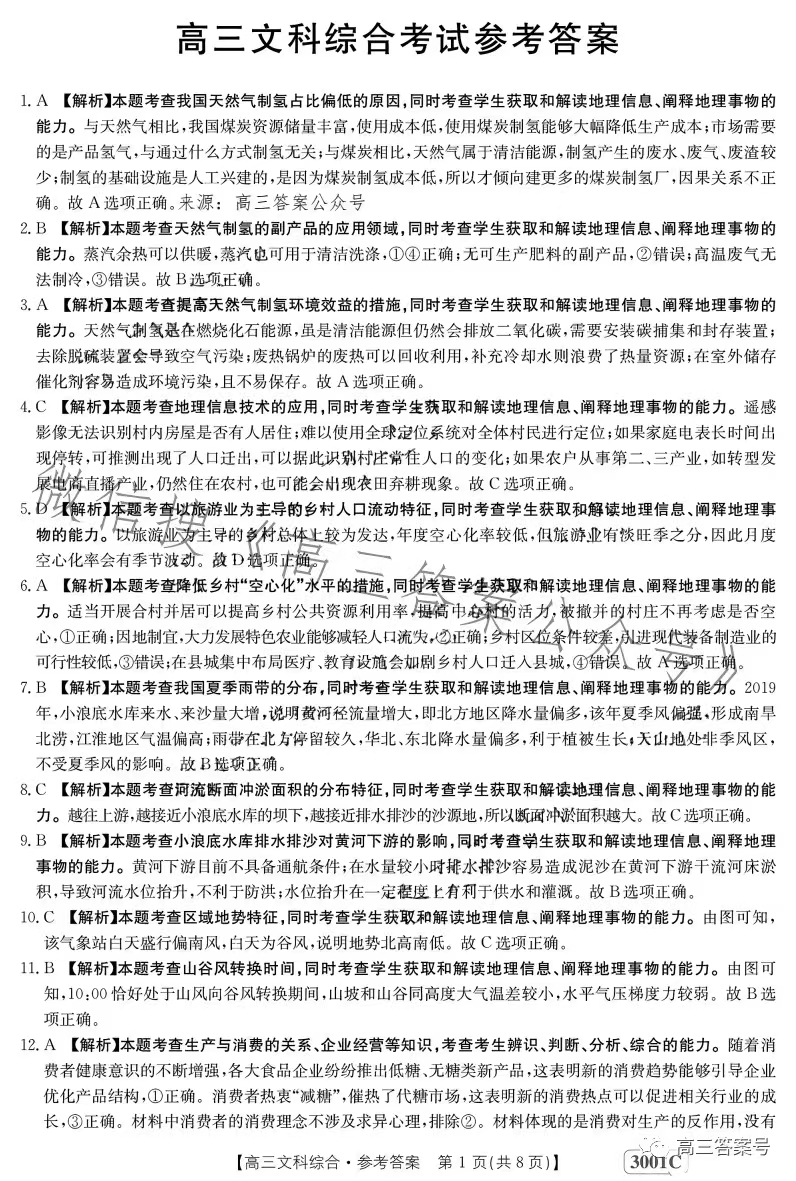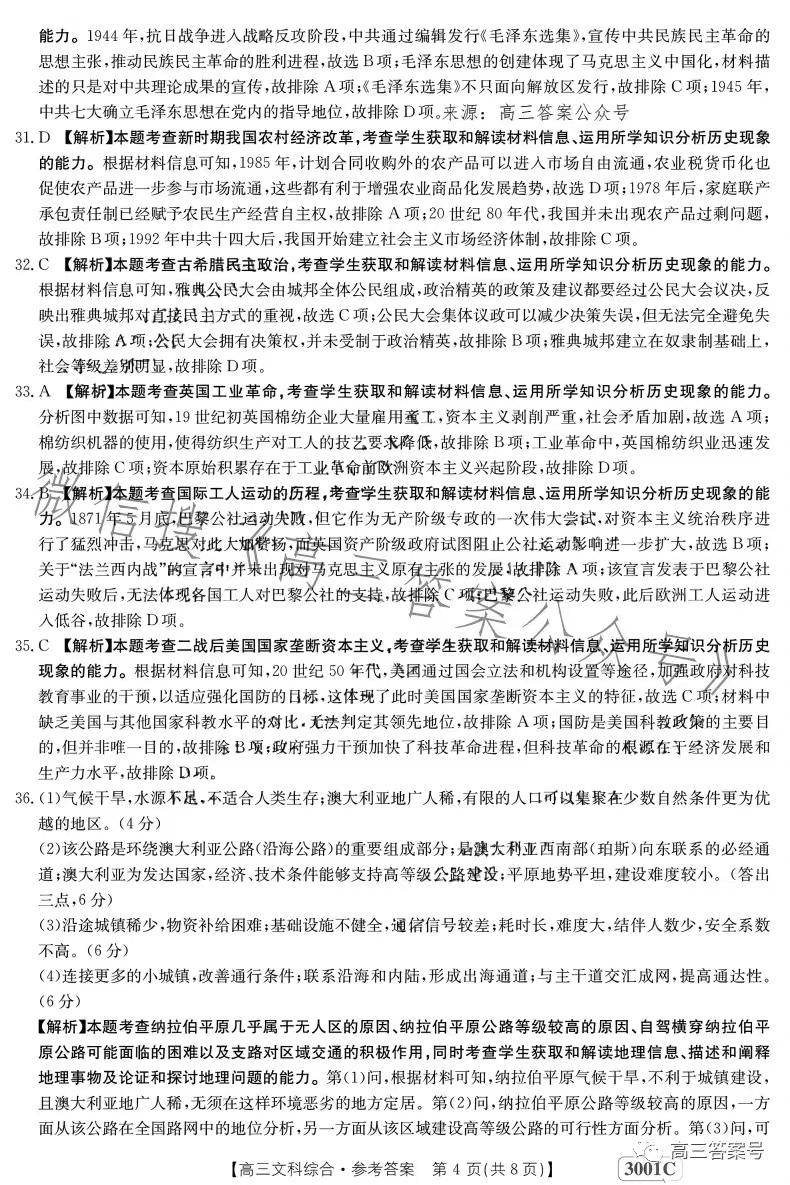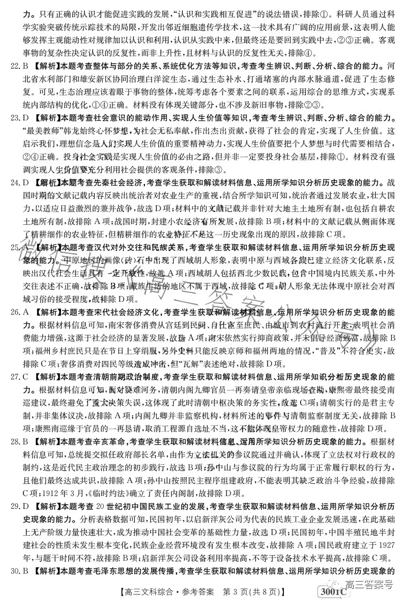 4.2023江西金太阳高三1月联考文综答案解析及试题解析汇总