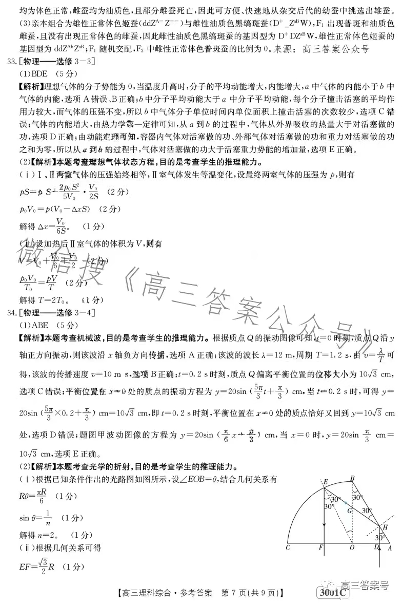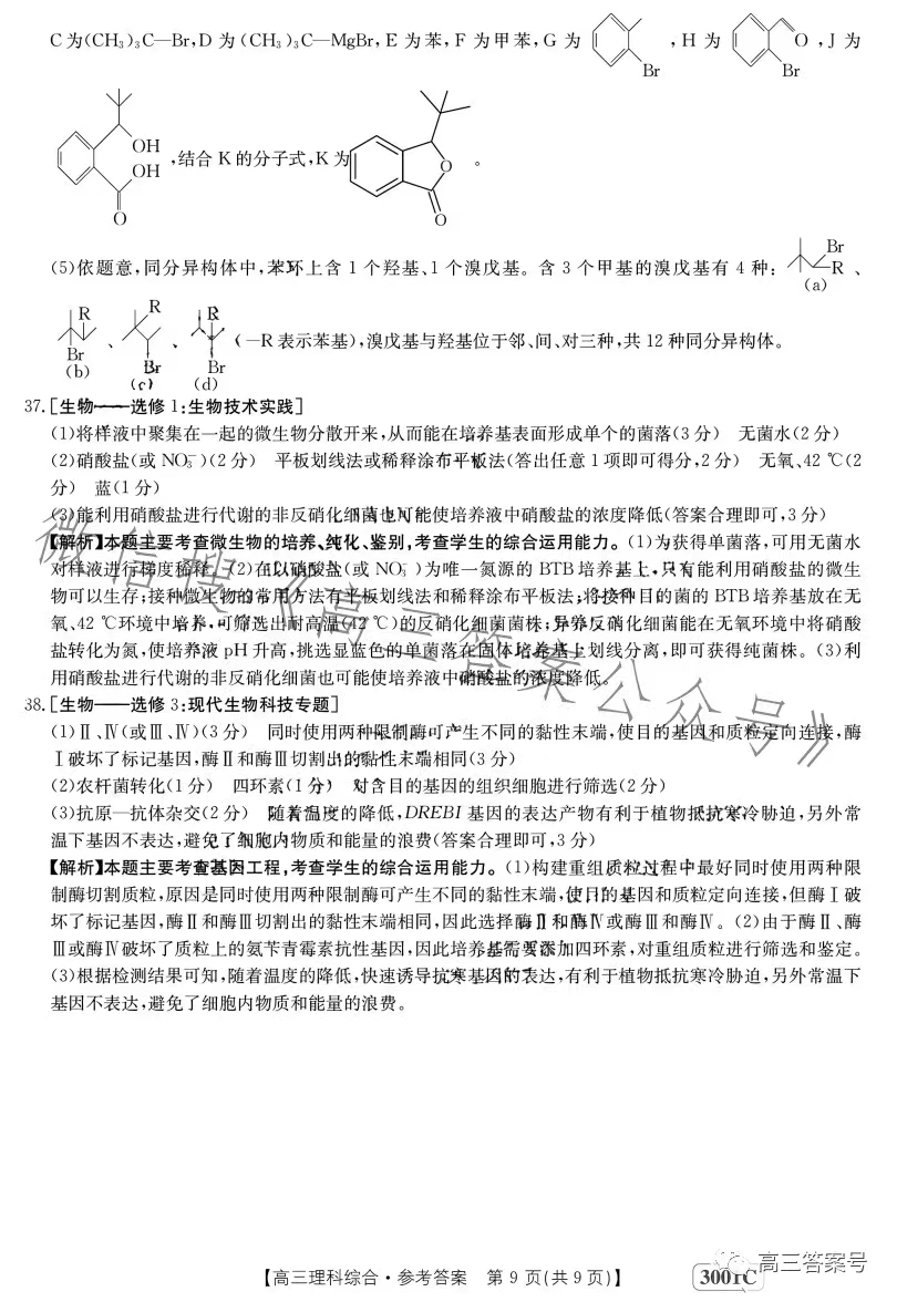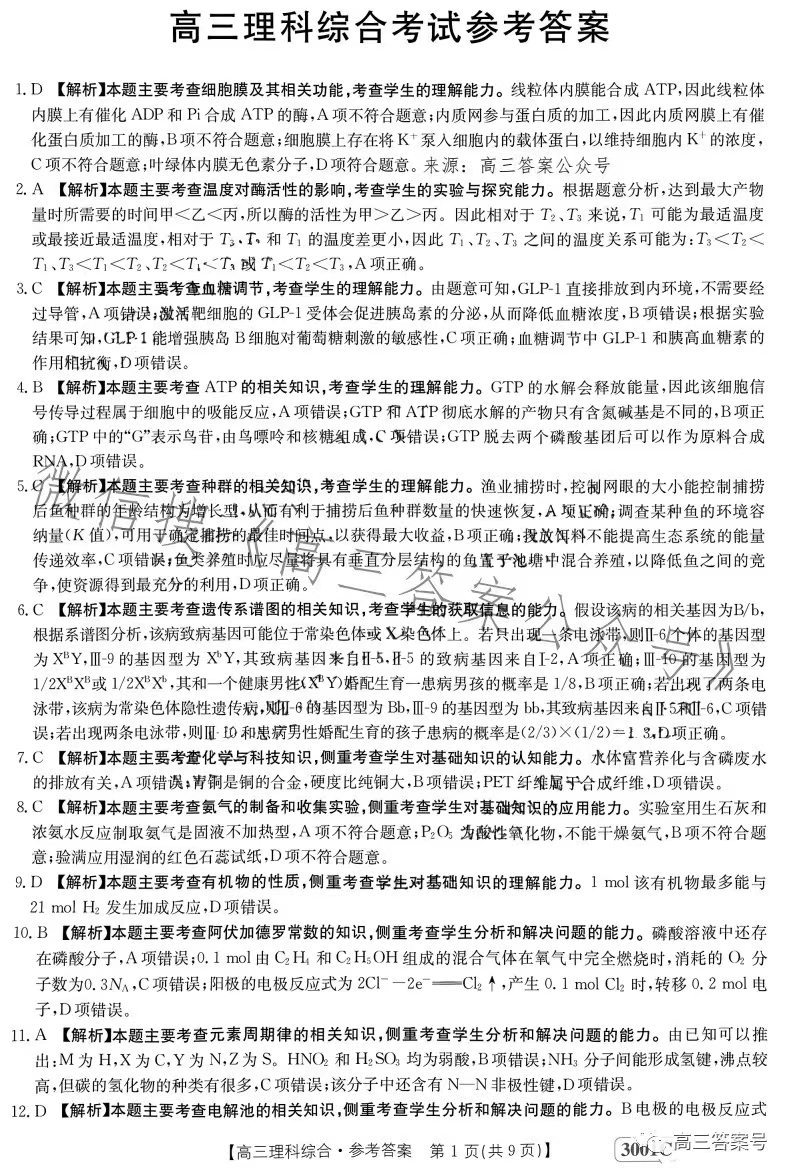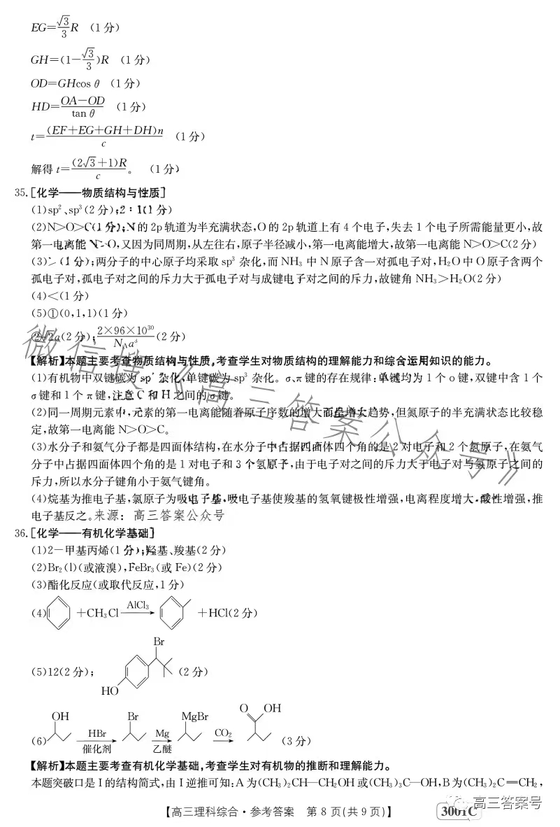 5.2023江西金太阳高三1月联考理综答案解析及试题解析汇总
