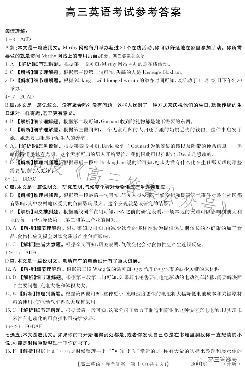 6.2023江西金太阳高三1月联考英语答案解析及试题解析汇总
