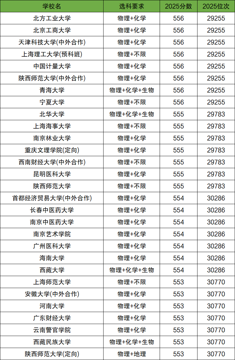 位次在30000左右的基本属于211或省重点院校,分数在556-553分之间。其中位次相对靠后的有河南大学、广东财经大学、云南警官学院、西藏民族大学、陕西师范大学(定向)。