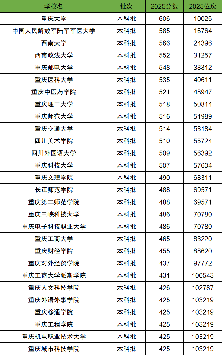 关于更多院校重庆本科的分数线及位次排名,本文都进行了整理,供查阅。