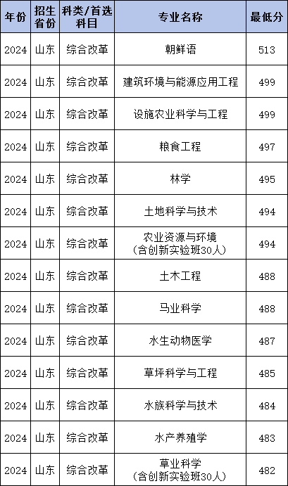 2024年青岛农业大学在山东省实施地方专项计划招生,录取分数线范围为482分到513分。下面是青岛农业大学地方专项计划最低分汇总: