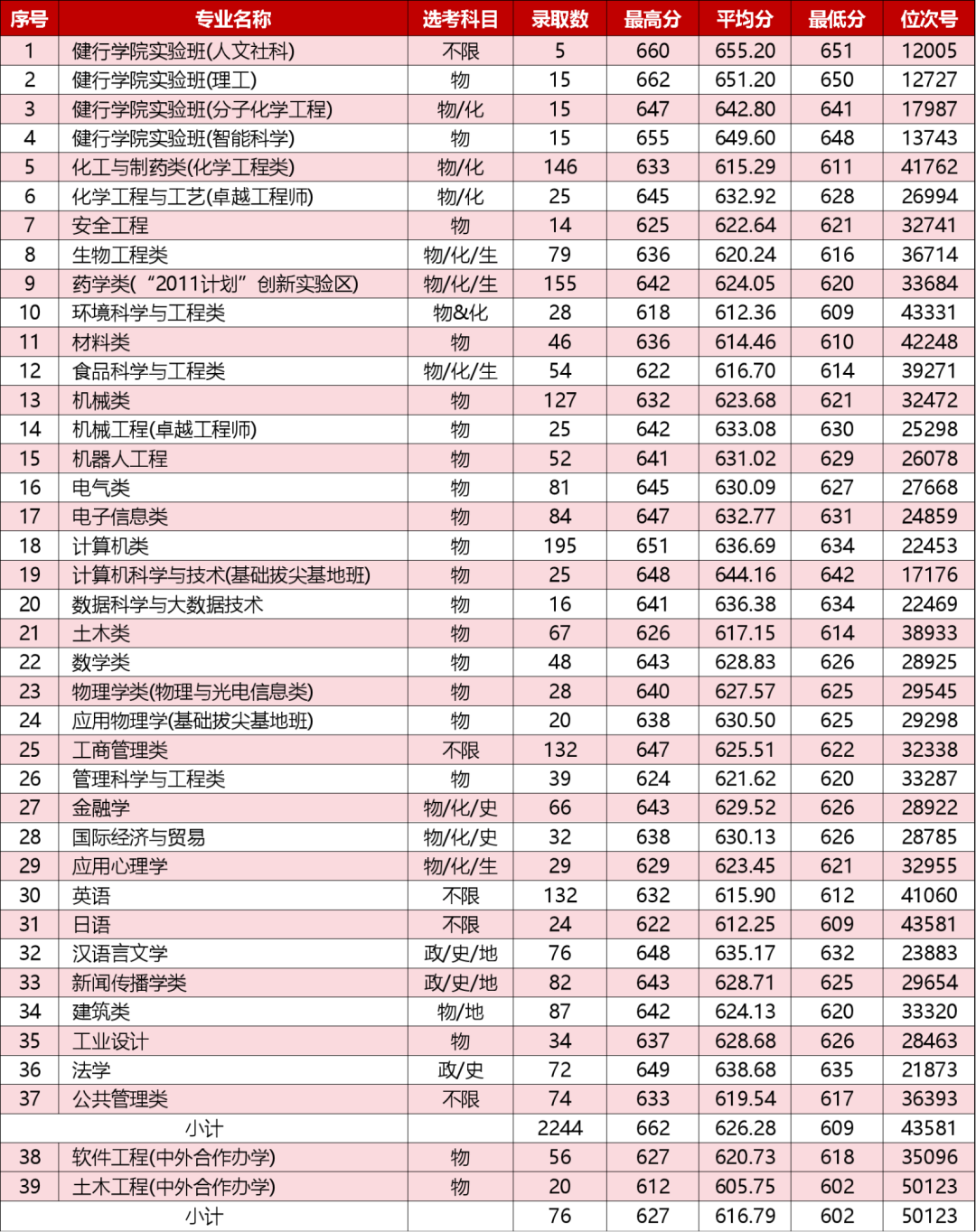 下文将为大家整理浙江工业大学2023年在浙江省各专业招生录取分数线: