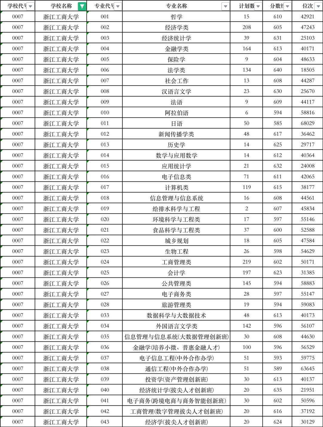 下文将为大家整理浙江工商大学2023年在浙江省各专业招生录取分数线:
