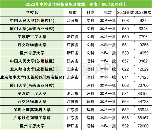 小编根据圆梦志愿提供的数据,在此整理的是中外合作院校2023年在四川和江西的录取分数线,如下: