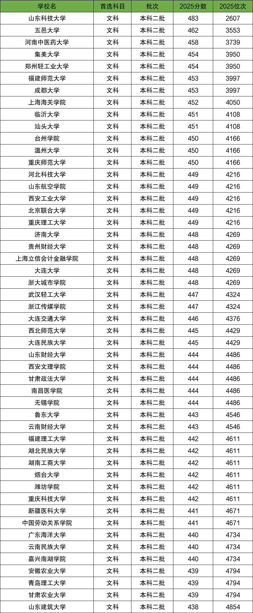 二、2025全国二本大学录取分数线