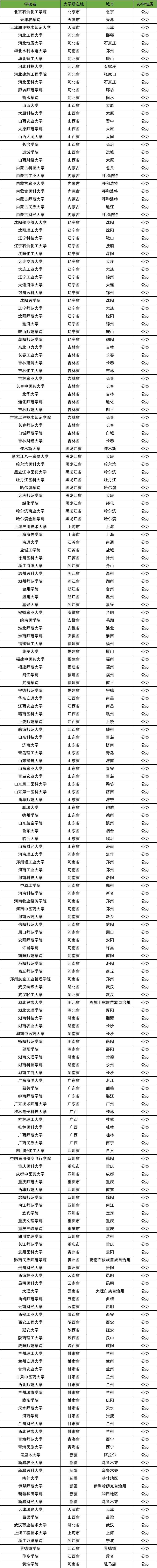 三、全国二本大学名单一览表(部分汇总)