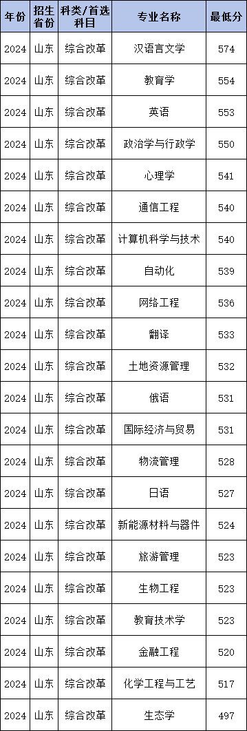 2024年曲阜师范大学在山东省实施地方专项计划招生,录取分数线范围为497分到574分。下面是曲阜师范大学地方专项计划最低分汇总: