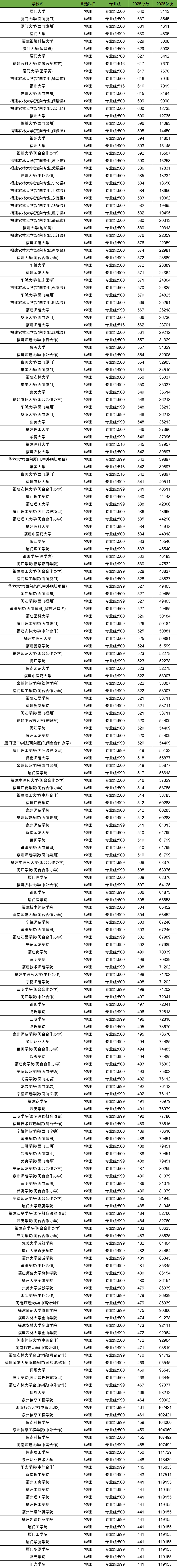 福建各高校物理类录取分数线范围在450分~611分之间,即福建历史类考生高考上了本科线就有机会被省内本科高校录取。