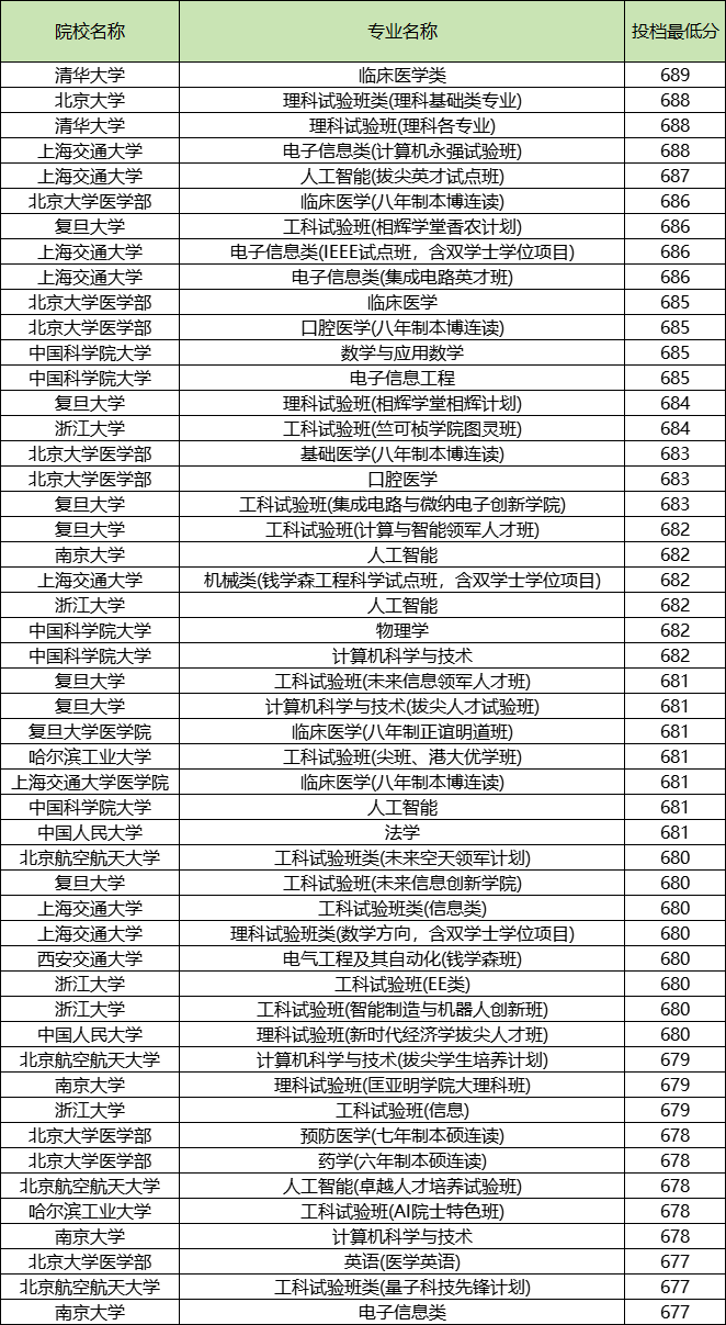 北京大学688分、清华大学688分、上海交通大学688分、上海交通大学687分、北京大学医学部686分、复旦大学686分、上海交通大学686分、北京大学医学部685分、中国科学院大学685分