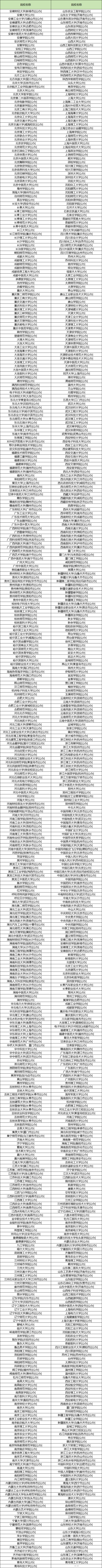 安徽财经大学、安徽大学、安徽工业大学、安徽建筑大学、安徽农业大学、安徽师范大学、安徽中医药大学、安康学院、安庆师范大学、安顺学院、安阳工学院、安阳师范学院、鞍山师范学院、白城师范学院、百色学院、宝鸡文理学院、保定学院、北方工业大学、北方民族大学、北华大学、北华航天工业学院、北京大学、北京大学医学部、北京第二外国语学院、北京电影学院、北京服装学院、北京工商大学、北京航空航天大学、北京化工大学、北京交通大学
