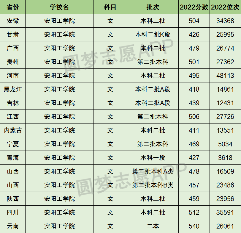 1、安阳工学院在全国普通高考省份的【文科】招录数据,包含招生批次等信息: