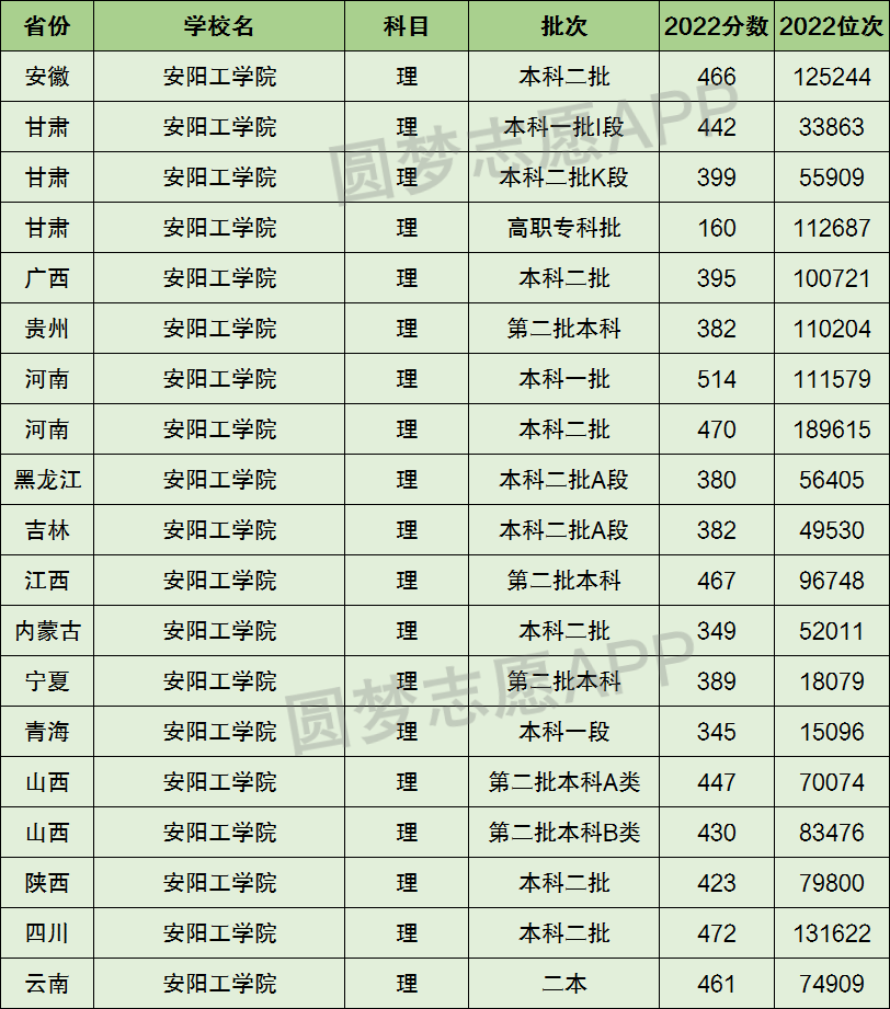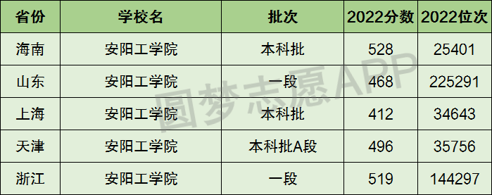 下面圆梦志愿将为大家展示安阳工学院2022年在全国各省市的最低分数线和位次,大家可以在了解安阳工学院在全国各省详细招生批次的同时,也顺便看看安阳工学院的招生录取分数线是多少!