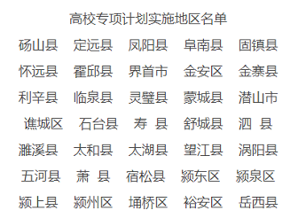 2026安徽高校专项计划实施区域涵盖35个县(市、区),具体实施区域名单如下: