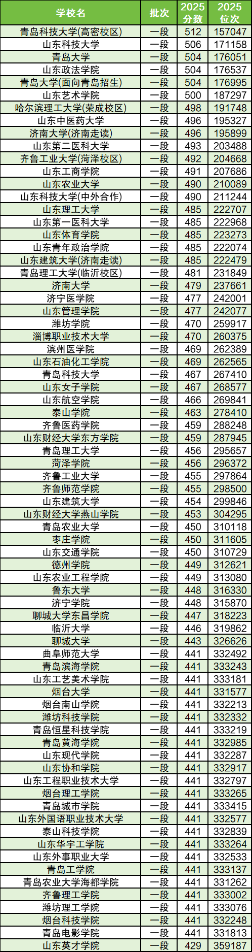 二、山东二本大学2025年录取分数线