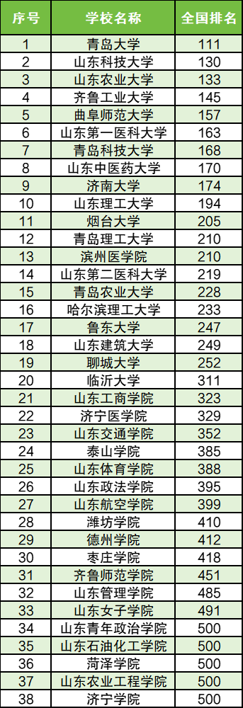 下面是山东省二本大学最新排名一览表,供参考(部分院校未参与排名):