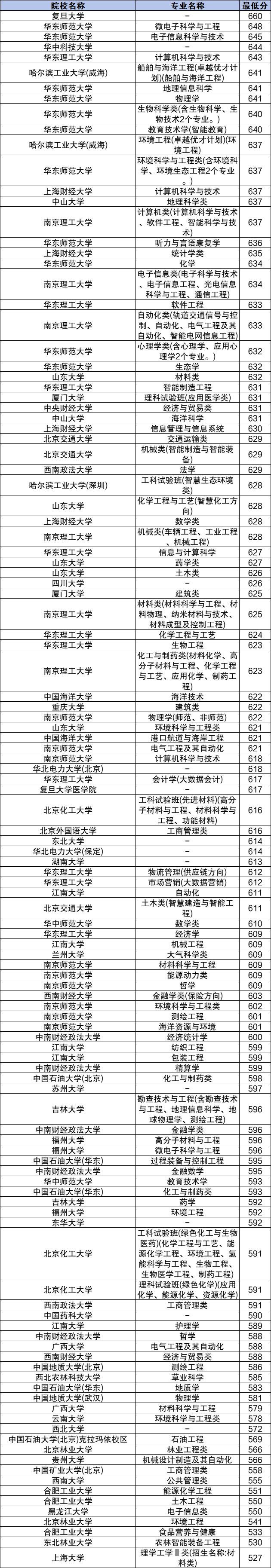 | 院校名称 | 专业名称 | 最低分 |