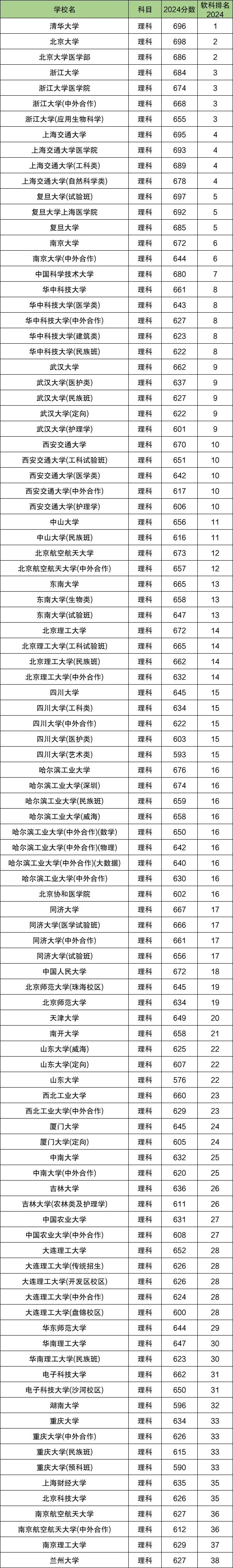 按照2024年全国所有大学在四川省理科一本招生的公办大学中,排名前十的公办大学分别是: