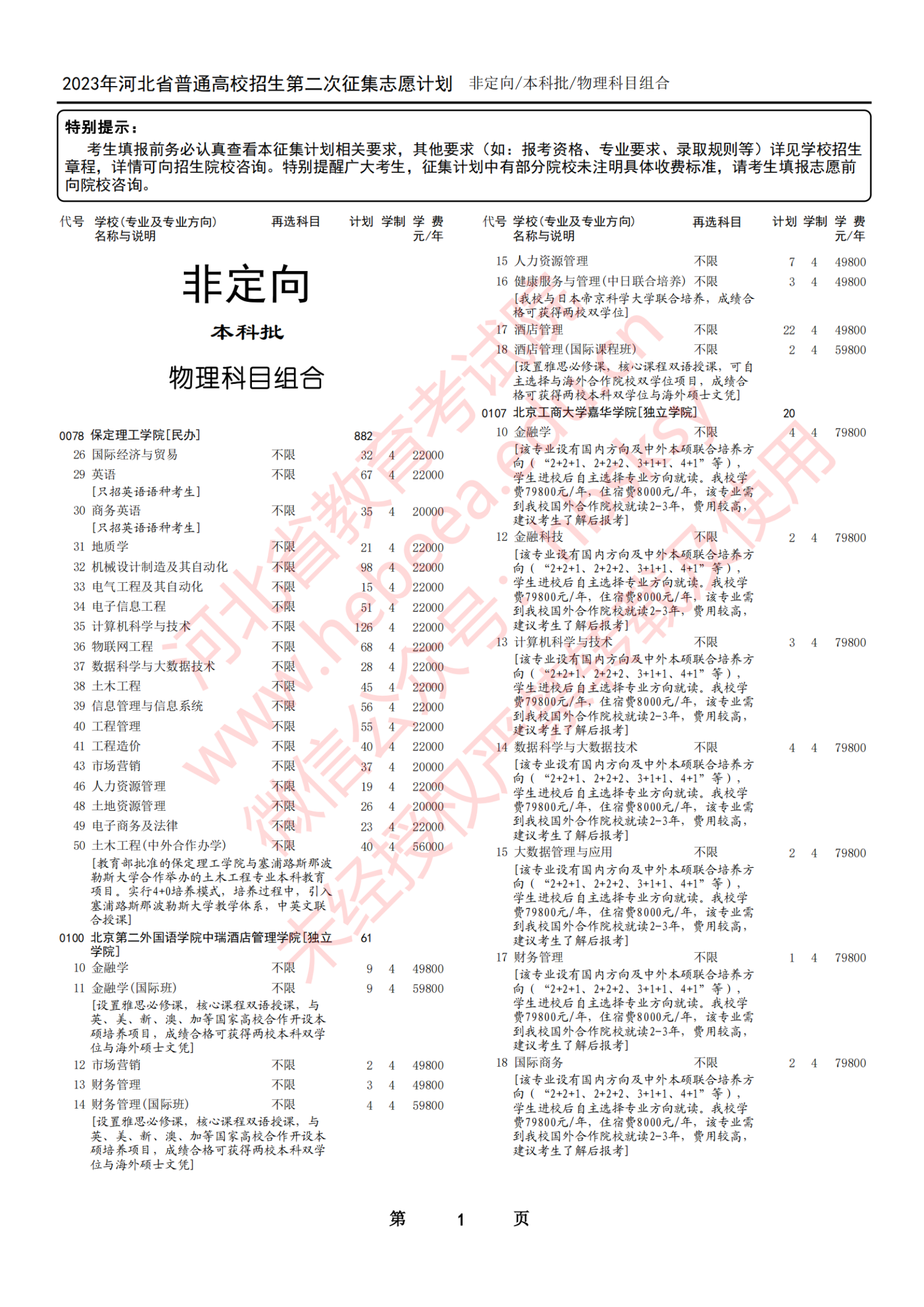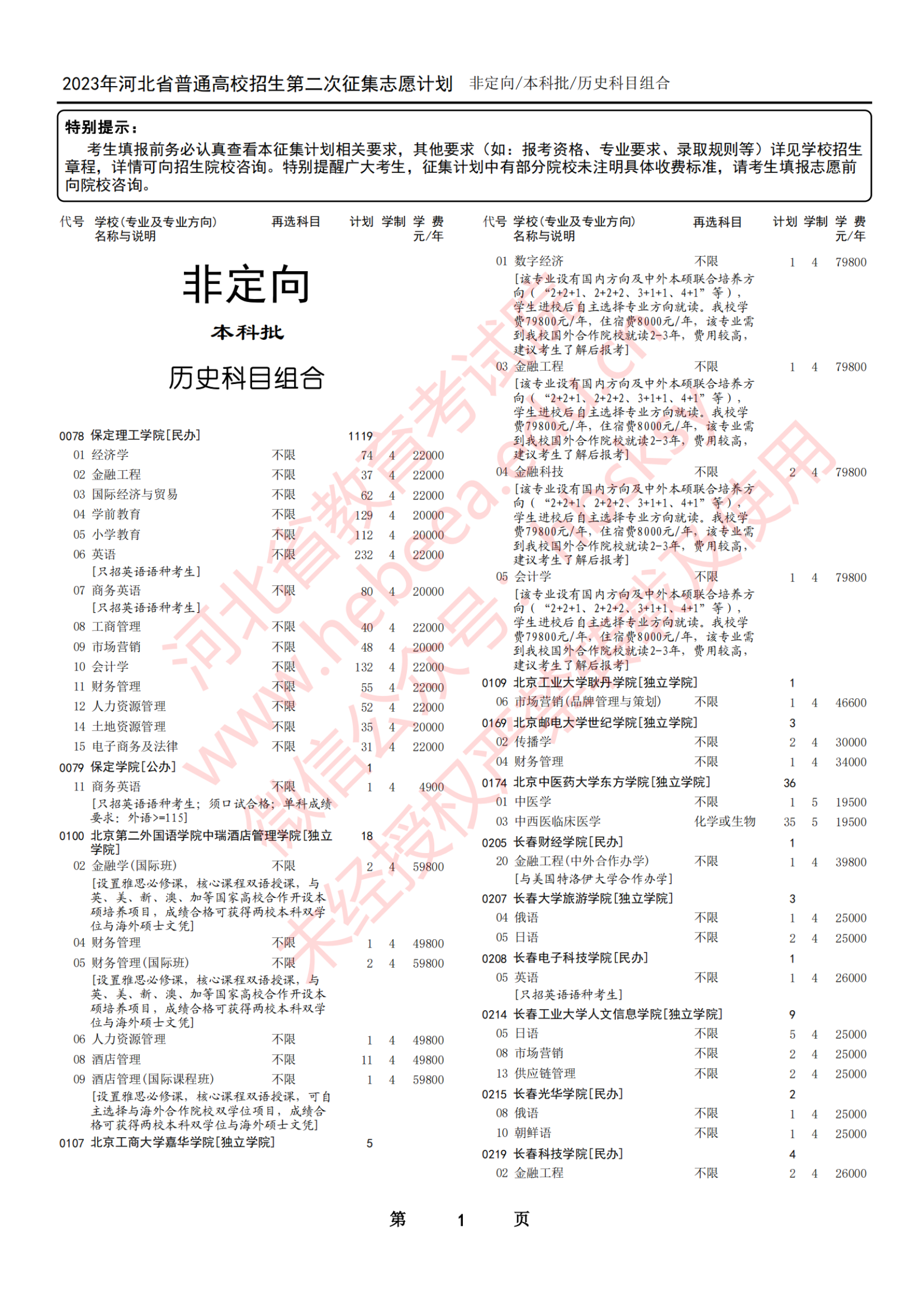 三、2023年河北高考本科批第二次征集志愿院校名单