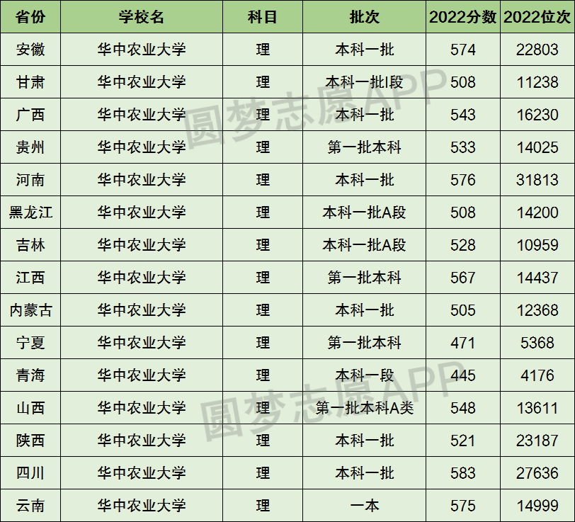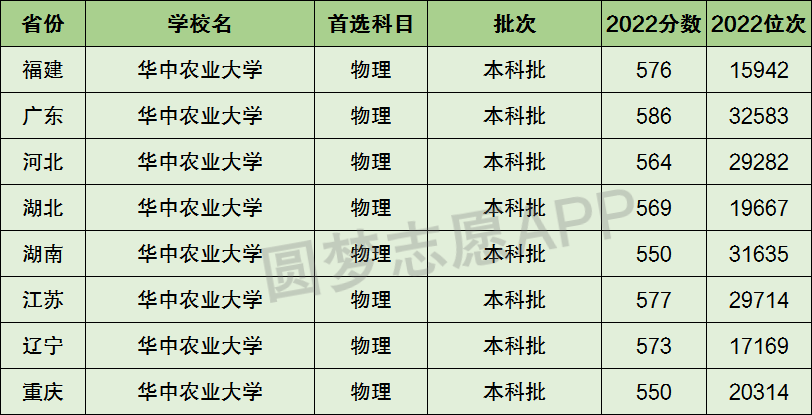 下面圆梦志愿将为大家展示华中农业大学2022年在全国各省市的最低分数线和位次,大家可以在了解华中农业大学在全国各省详细招生批次的同时,也顺便看看华中农业大学的招生录取分数线是多少!