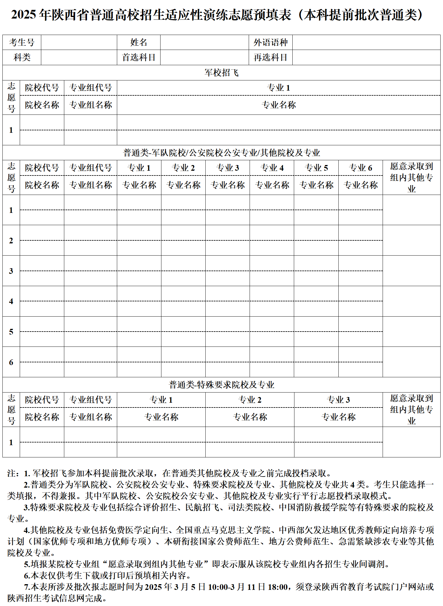 二、2025年陕西高考志愿填报样表