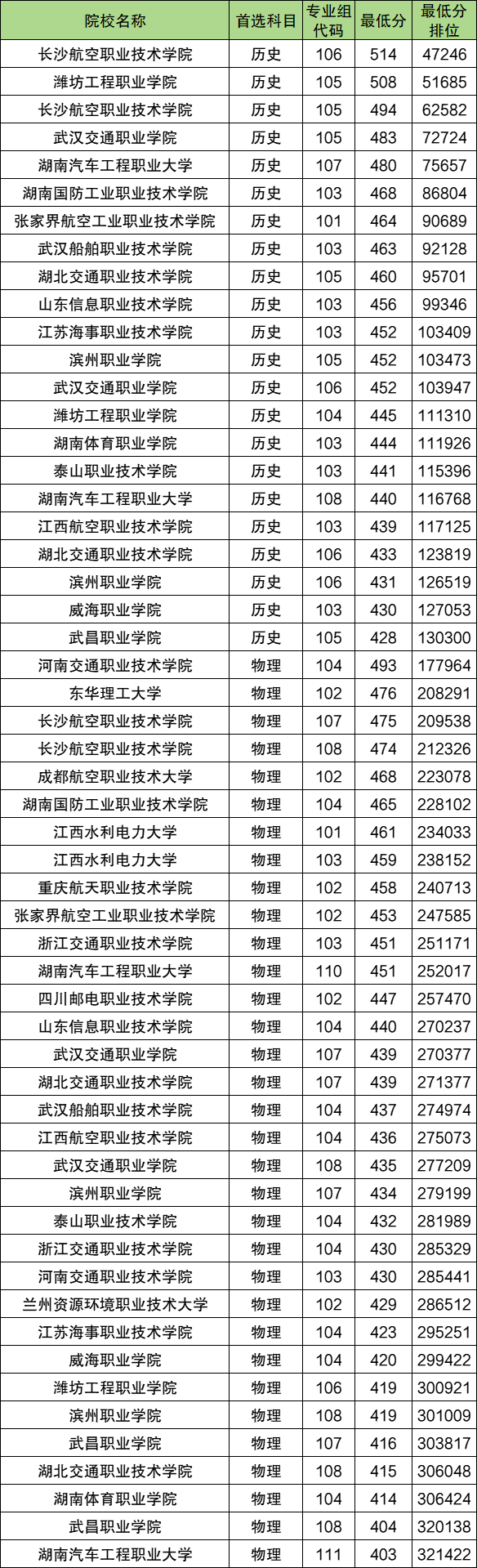 长沙航空职业技术学院:历史类494分、物理类474分;