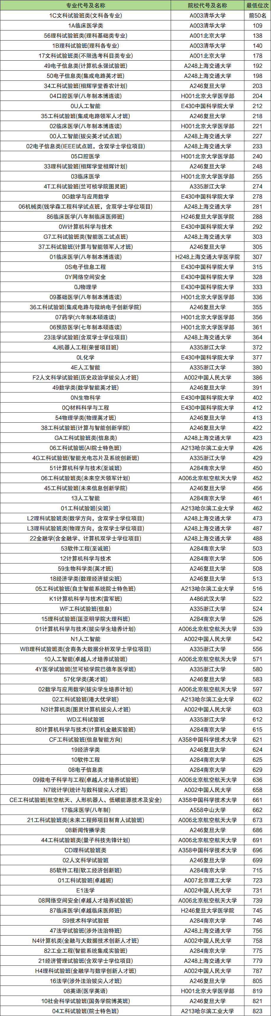 篇幅有限,下面仅展示全国高校在山东一段录取分数线排名前100强名单: